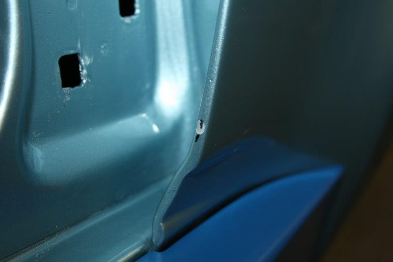Wenn da, jaaaa, wenn da nicht auf einmal am unteren Ende der A-Säule Lack-Krümel liegen würden :-\... Och, nich so schlimm, das ist der Lack, der sich jetzt von den Scharnieren löst, das hört auf. Aber nein, das ist es nicht :(... es ist das untere Gelenk, das beim Schliessen der Tür von innen gegen den Kotflügel drückt und den nach aussen wölbt :(. Verdammt, jetzt rächt sich, das da letzten September der Kotflügel nochmal ab war!