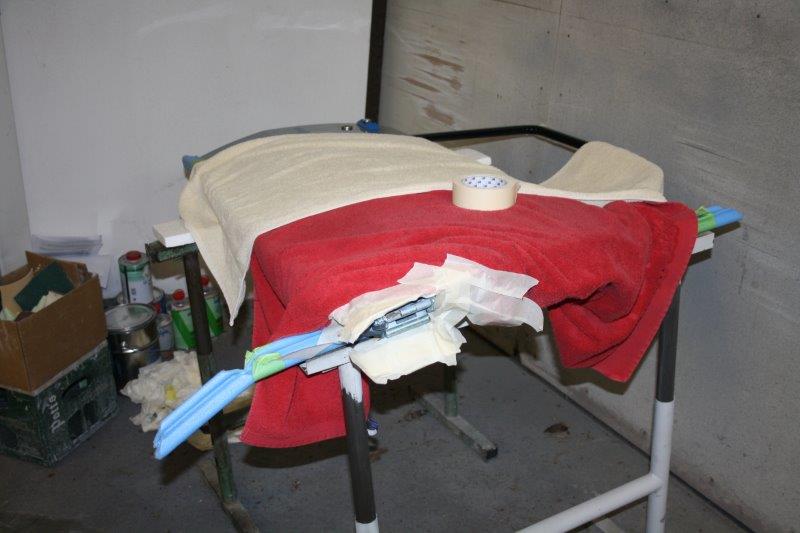 Was an sich klar war ist, dass mit der lackierten Karosserie ein Motivationsschub einsetzt. Und obwohl ich von den Lack-Guys mehrfach die eindringliche Empfehlung bekommen habe, die lackierte Karosserie 8 Wochen ruhen zu lassen kann ich nicht an mich halten und räume schon mal die Heckklappe beiseite ::)...